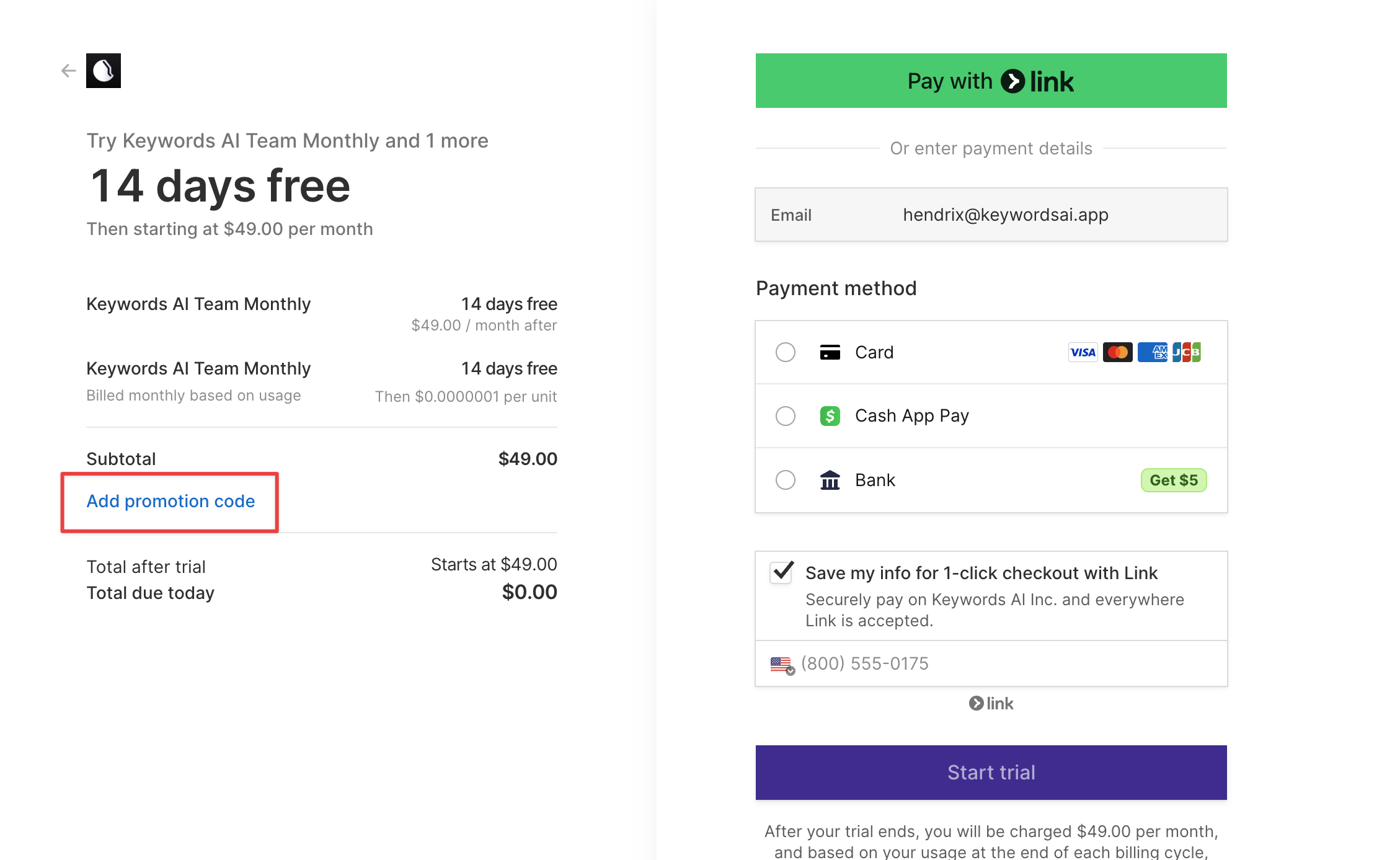 Once you click on the plan, you’ll be redirected to the checkout page. Type in the promo codeBOOKFACE to redeem the deal.